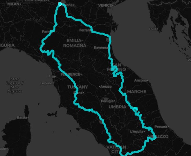 lungo il percorso ci sono oltre cinquanta luoghi tra borghi antichi, città d'arte, laghi cerulei passi appenninici, parchi regionali e nazionali, tutti segnalati sui files che fanno parte del nostro pacchetto Roadbook.